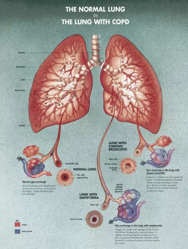 慢阻肺病死率高,伴有气促、咳痰、喘息并反复加重,不仅损伤气道、肺泡和肺血管,同时还损伤肺外组织,如骨骼、骨骼肌、心脏以及其他器官,是一个多基因的全身性疾病。
