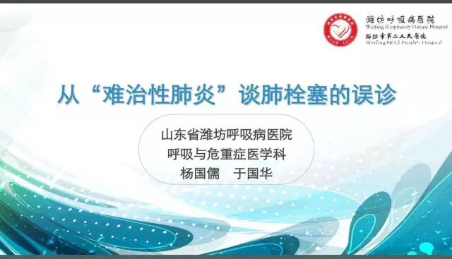 在大会上,于国华大夫代表潍坊呼吸病医院进行了题目为《从“难治性肺炎”谈肺栓塞的误诊》的学术分享,得到了全国广大业界同仁的肯定!这在潍坊呼吸界历史上是第一次,有着里程碑式的意义!