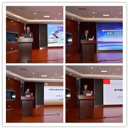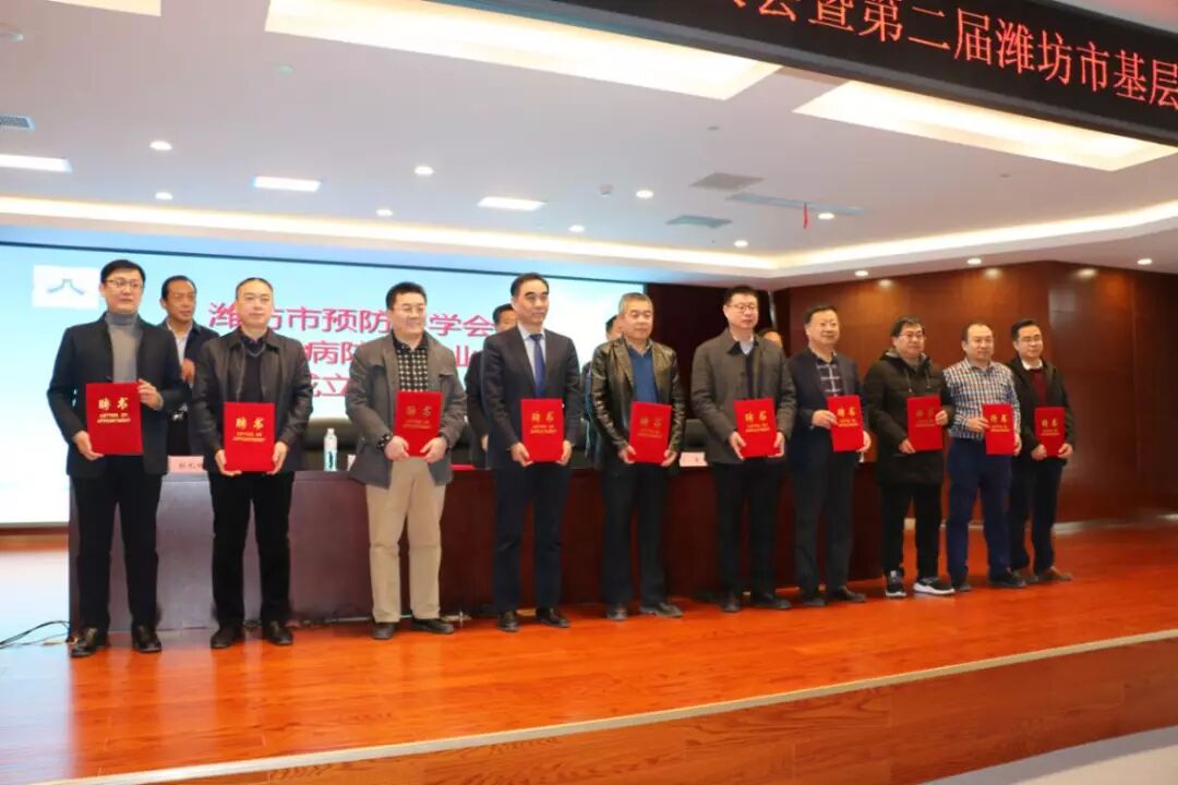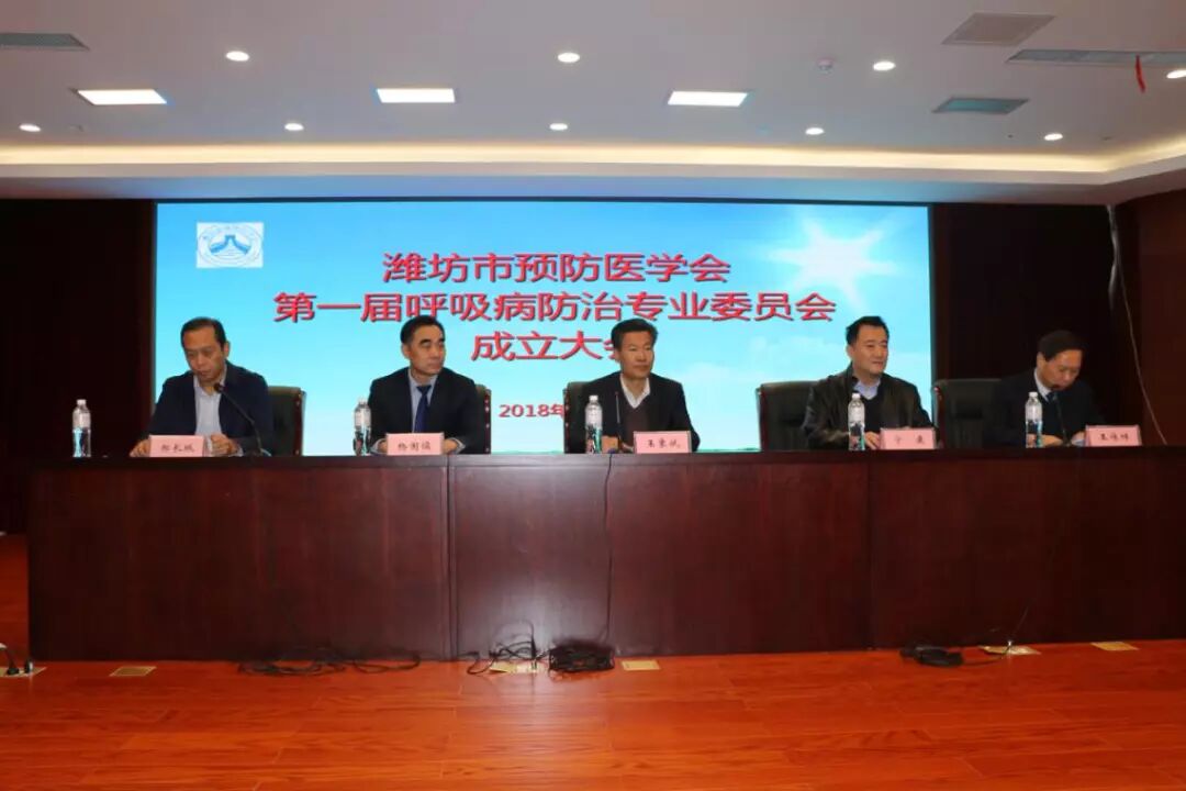 山东预防医学会呼吸病防治分会主任委员、山东省千佛山医院呼吸科主任、主任医师宁康教授出席会议并致辞,潍坊市预防医学会会长、潍坊市卫计委四级调研员王象斌出席会议并讲话,新当选的潍坊市预防医学会第一届呼吸病防治专业委员会主任委员杨国儒理事长代表专业委员会讲话,我院党委副书记、院长郝长城代表挂靠单位讲话。成立大会由潍坊市预防医学会秘书长、潍坊市卫计委四级调研员、疾病控制科科长王传祥主持。